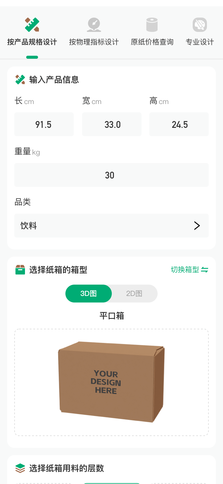 支持自定义 纸板层数、边压、耐破、环压 等参数,满足不同行业与不同负载场景需求。